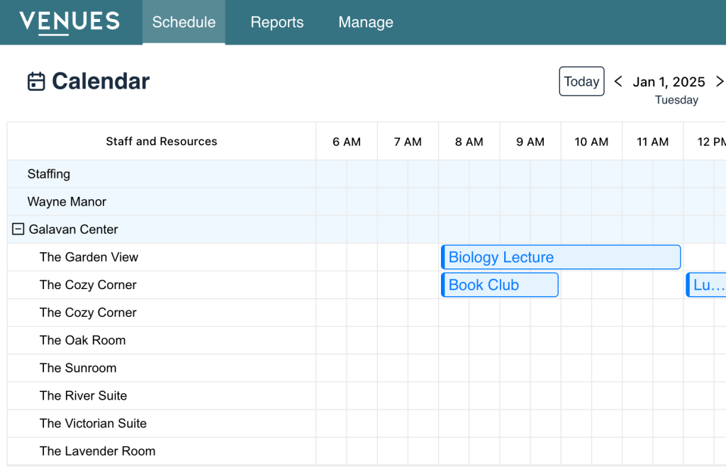 Venues by All Scheduled is room scheduling software made for you! Designed by building managers, schedulers, and receptionists to streamline room scheduling, management, setup, and invoicing — scheduling made easy!